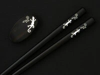 Produktdetails fĂĽr „Essstäbchen Set mit Ablage „Sanshouo“, Ebenholz“