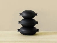 | Maße: | Gr. 1: 12,8 x 16,4 x 3,8 cm. Boden Ø 5,5 cm Gr. 2: 14,5 x 18,1 x 3,8 cm, Boden Ø 7 cm Gr. 3: 16 x 19,6 x 3,8 cm, Boden Ø 9,2 cm |