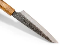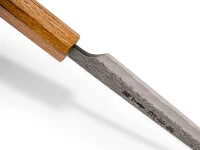 Japanische Kochmesser bestehen aus äußerst harten Stählen und sind dünner geschmiedet und geschliffen als ihre europäischen Pendants. Einige dieser Messer verfügen über sehr fein geschliffene Schneidlagen, wodurch sie empfindlicher sind und sich lediglich für weiches Schnittgut eignen. Bitte beachten Sie diesbezügliche Informationen in den Produktdetails. Insbesondere Messer mit sehr dünner Schneide und Hohlschliff neigen zu Ausbrüchen an der Klinge. Diese sind hervorragend für feine Schnitte von weichem Schnittgut geeignet, sind aber mit entsprechender Vorsicht zu verwenden. Beim Schärfen auf einem Schleifstein entsteht in der Regel ein Winkelschliff, wodurch die Schneide mit der Zeit stabiler wird.