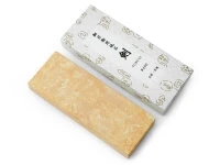 Die allermeisten synthetischen Wasserschleifsteine aus Japan werden getrocknet und nicht gebrannt. Deshalb sind sie weicher und geben beim Schleifen relativ viel abrasives Material frei. Prinzipiell ist das sehr gut, hat aber auch einen Nachteil: die Schleifsteine nutzen sich in der Regel schneller ab. Miyagoshi hat sich deshalb für eine andere Fertigungsmethode entschieden, die Vitrified-Methode. Vitrified heißt Verglasung. Die Mischung aus keramischem Bindemittel und den Schleifmitteln wird bei hohem Druck gepresst und bei ca. 1300° Celsius 36 Stunden lang gebrannt. Das Endergebnis ist sehr widerstandsfähig, selbst gegen Lauge und Säure, was in der industriellen Anwendung sehr wichtig ist. Als Schleifmittel werden Aluminiumoxid, Zirkonoxid sowie Siliziumoxid höchster Qualität eingesetzt. Nachdem diese Steine gewässert sind, wird durch den Schleifvorgang eine Oberfläche erzeugt, die ein hervorragendes Schleifergebnis liefert. Das Gefühl beim Schleifen ist etwas anders als bei herkömmlichen, weichen Wassersteinen. Die Messerführung wirkt exakter und leichter. Die Abmessungen der Schleifsteine von Miyagoshi sind mit meist 75 mm Breite und 205 mm Länge sehr gut dimensioniert, so dass auch große Messer komfortabel geschliffen werden können.
