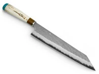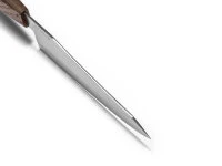 Das Messer sollte grundsätzlich gerade mit ziehendem oder schiebendem Schnitt geführt werden, ohne großen Druck. Vermeiden Sie, um die Schärfe zu erhalten, auf Stein, Glas oder anderen harten Unterlagen zu schneiden. Zum Nachschärfen auf keinen Fall „Wetzstahl“ verwenden. Empfohlen werden Wasserschleifsteine (Körnung: 400-1200 für Vorschliff, 3000 für den Feinschliff, 6000 oder mehr, um die Klinge abzuziehen) und ggf. ein Abziehleder.
