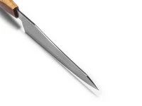 Das Messer sollte grundsätzlich gerade mit ziehendem oder schiebendem Schnitt gefĂĽhrt werden, ohne groĂźen Druck. Vermeiden Sie, um die Schärfe zu erhalten, auf Stein, Glas oder anderen harten Unterlagen zu schneiden. Zum Nachschärfen auf keinen Fall „Wetzstahl“ verwenden. Empfohlen werden Wasserschleifsteine (Körnung: 400-1200 fĂĽr Vorschliff, 3000 fĂĽr den Feinschliff, 6000 oder mehr, um die Klinge abzuziehen) und ggf. ein Abziehleder.