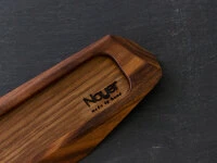 Die Messerhalter von Noyer gibt es in verschiedenen Größen: 25 cm, 40 cm, 60 cm und 80 cm. Sie werden aus einem Stück Holz geschnitten, das beispielsweise 40 cm lang ist. Die Länge des fertigen Produktes variiert jedoch geringfügig. Alle Messerblöcke werden von Hand gefertigt und jeder Artikel unterscheidet sich in der Form von dem anderen. Sie sind alle in 45-Grad-Winkel geschnitten und lassen sich sehr einfach mit zwei Schrauben an einer Wand befestigen. Die Schrauben sind nach der Montage nicht mehr sichtbar. Der magnetische Teil besteht aus kleinen, aber sehr starken Neodym-Magneten. Zum Beispiel: In die Magnetleiste mit 40 cm sind 20 kleine Magnete eingebaut, damit sich die Messer nicht „drehen“, wenn sie auf den Messerhalter aufgebracht werden. Die magnetischen Messerhalter sind für mindestens 3 (25 cm), 5 (40 cm), 8 (60 cm) und 11 (80 cm) Messer geeignet. Die Front der Messerhalter besteht aus amerikanischem Walnuss Holz oder schwarz lackierte Esche.