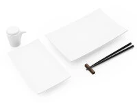 | Maße: | Sushiplatte: 28,4 x 17,7 cm, H 27 mm Sushiteller: 22,5 x 13,4 cm, H 22 mm Essstäbchen: L 230 mm |