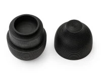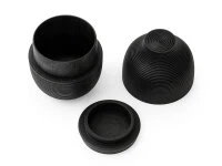 Bei den Teedosen Karmi von Gato Mikio sind Dose und Deckel so handwerklich gefertigt, dass sie einen guten Verschluss bilden, dabei aber leicht zu öffnen sind. Optimal werden die Fähigkeiten des Holzes, Feuchtigkeit und Temperatur zu regulieren, genutzt, um den Inhalt zu schützen. Die Teedosen bieten einen natürlichen Schutz der Teeblätter und ein erstaunliches Maß an Versiegelung. Gerade der Schutz vor Feuchtigkeit ist durch das Material Holz besonders ausgeprägt. Das Design mit den markanten Rillen entsteht durch eine ausnahmslos in Yamanaka beherrschte traditionelle Drechseltechnik, die Kasyokubiki genannt wird. Es gibt mehr als vierzig verschiedene Muster (Hira-suji) dieser Holz-Dekoration. Die Teedosen der Serie Karmi sind zur Lagerung von Grüner Tee, Schwarztee, China Tees, Kräutertees und auch Kaffeebohnen verwendbar.